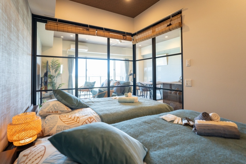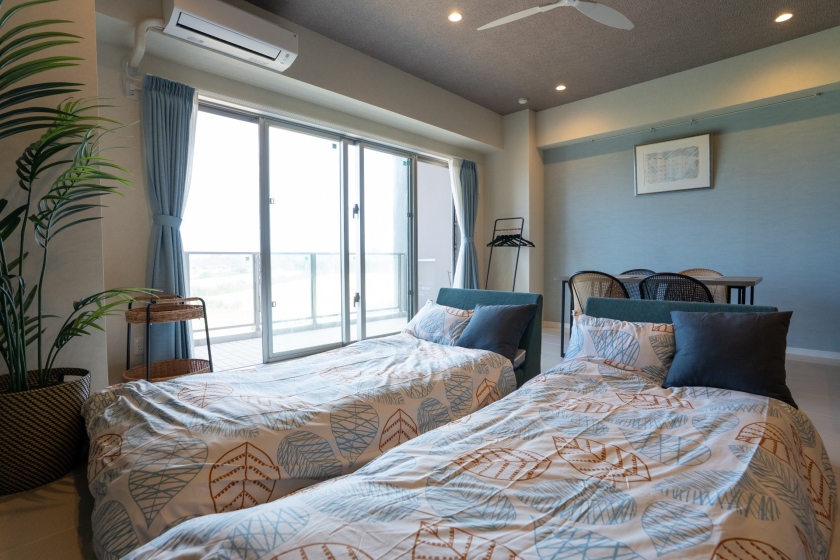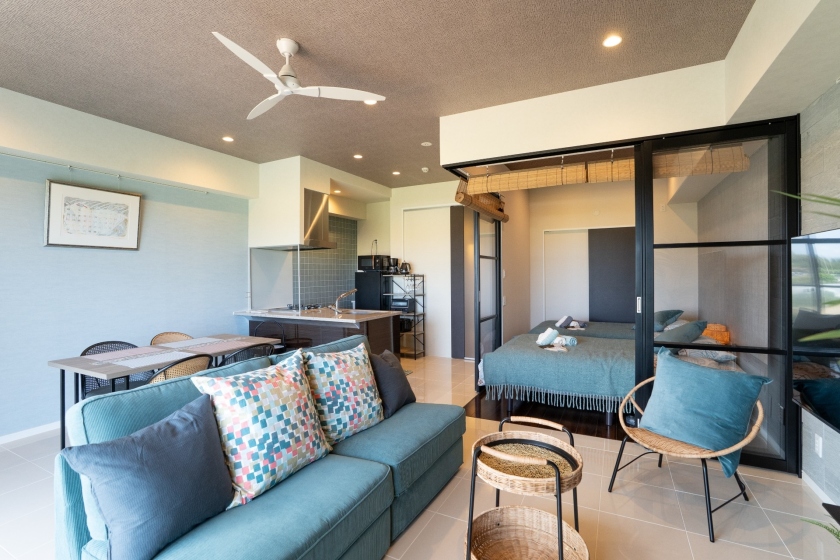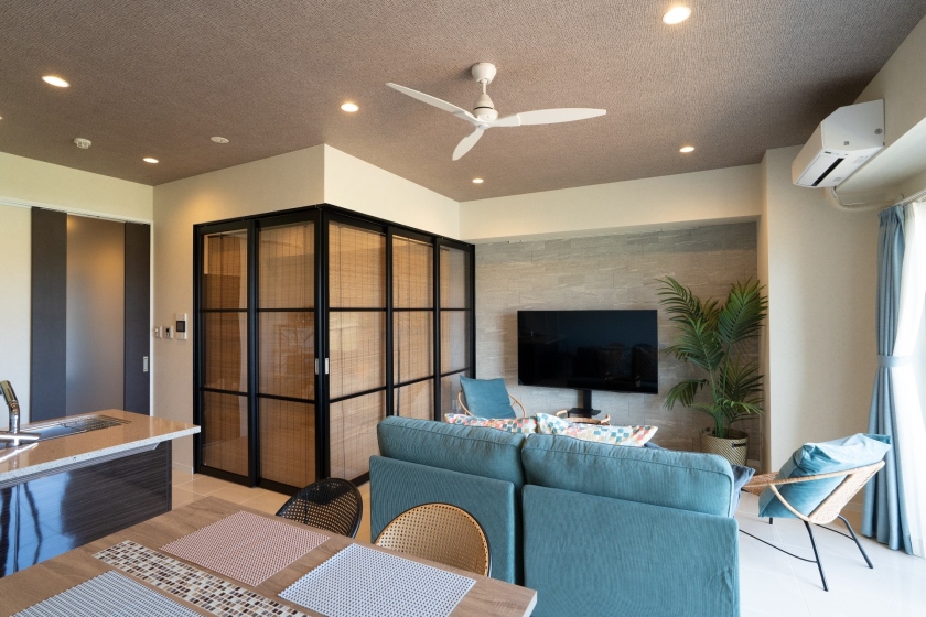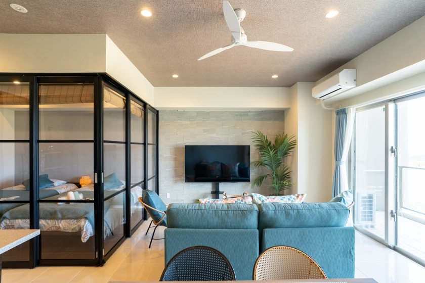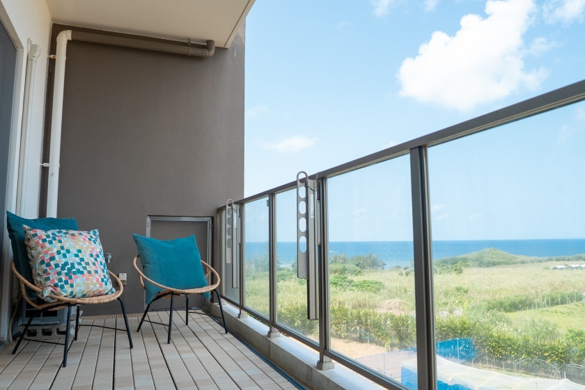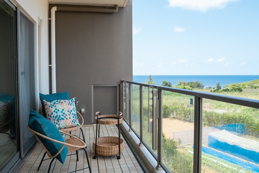 沖縄の青い海が目の前に広がる、マンションタイプの貸切プライベートのお部屋です。
