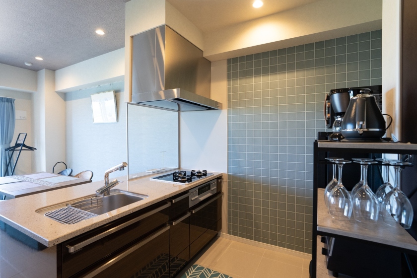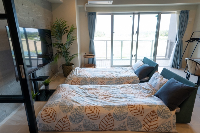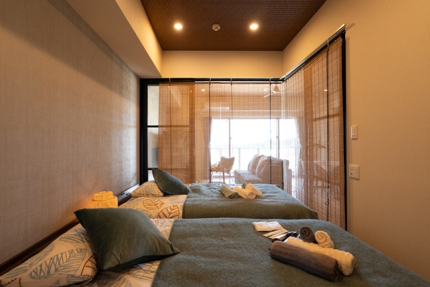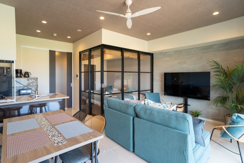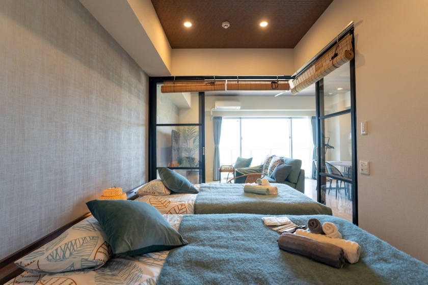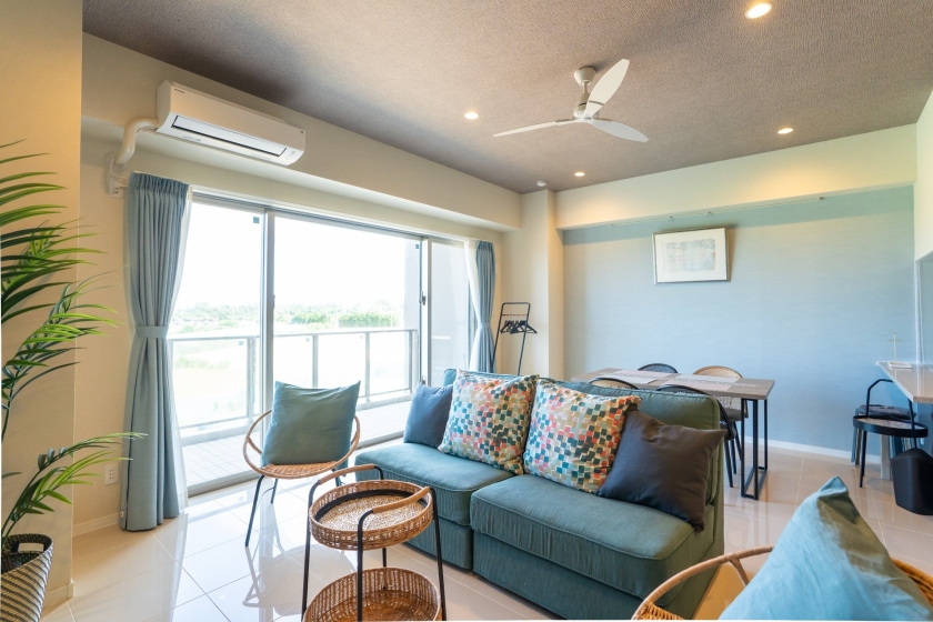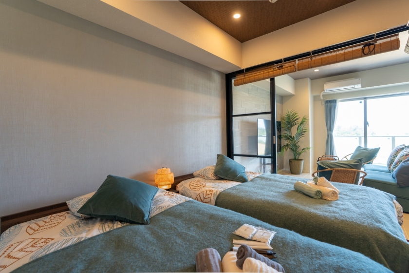沖縄の青い海が目の前に広がる、マンションタイプの貸切プライベートのお部屋です。