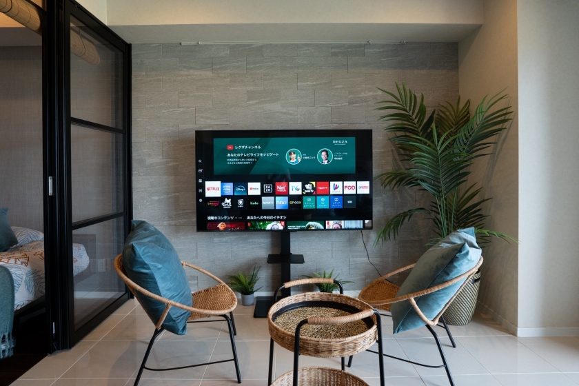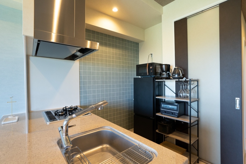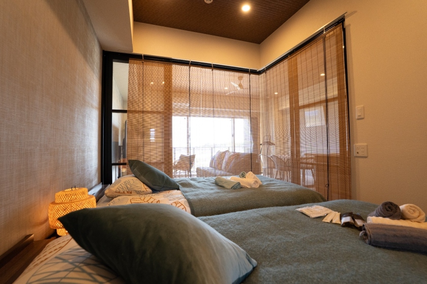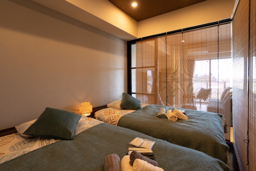 カップルや親子旅行にぴったりのサイズ感。寝室の壁を取り払い、開放感のある広々とした室内にリフォームされた空間で、心までくつろぐご滞在をお愉しみください。お子さま向けの椅子、添い寝用ベッドも用意してます。