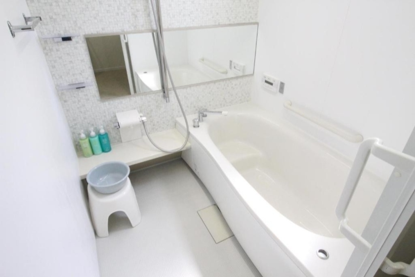 | 設備 | 無料Wi-Fi 防犯カメラ エアコン TV IHコンロ 冷蔵庫 電子レンジ 炊飯器 電子ポット フライパン 鍋 調理器具 茶碗・汁椀 カトラリー 皿 グラス 洗浄機付きトイレ 手洗い場 ハンドソープ バストイレ別 バスタブ 洗濯機 乾燥機 洗濯洗剤 |